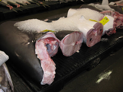 Although it was sad to see so many magnificent and rapidly disappearing animals on the auction floor, it was a fascinating experience to see how the tuna auction works and to get to talk to some of the people there. Sean Martin, who owns several of the Hawaiian tuna longline boats walked us through the auction process and talked to us about management issues in the fishery. The Hawaiian longline fishery is perhaps the most regulated fishery in the Pacific ocean. The US has strict laws to protect species, including sea turtles, sea birds, and marine mammals, that often are caught by or otherwise interact with longlines. Once the Hawaiian longline fleet has had a certain number of interactions with protected species, the fishery is shut down for the rest of the season. However, fishing boats from other countries do not have to abide the same rules, even though they may be fishing in the same area. While Hawaiian tuna fishermen have seen that the required conservation measures do not reduce their catches, they are frustrated that they must often end their season early while fishermen from other nations continue fishing, and do so without the conservation measures that the US fishermen use. The Hawaiian fishermen would like to encourage fishermen from other countries to implement the conservation measures used in the US, since they reduce catch of unwanted species without reducing the catch of target species. But, communication is difficult because fishermen are very independent and do not like other people telling them what to do.
