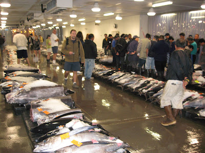 This morning we left at 5:00 am for the Honolulu Tuna Auction. This is where all the Hawaiian tuna longline vessels bring their catch to sell. They bring all the fish into the auction house and lay them in rows on pallets. Then, the auctioneer, along with all the buyers, walks up and down the rows auctioning off each fish one by one.